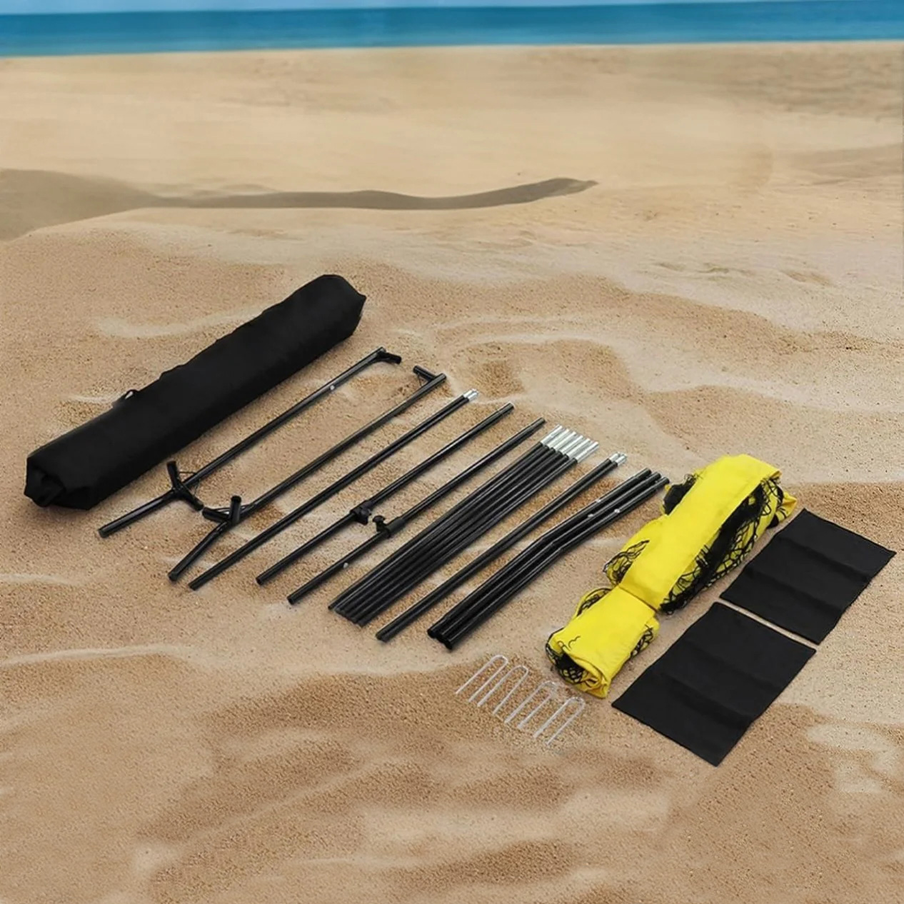 【CONTENTS】: Volleyball net with stands, ground stakes, sandbags, zipped carrying bag.