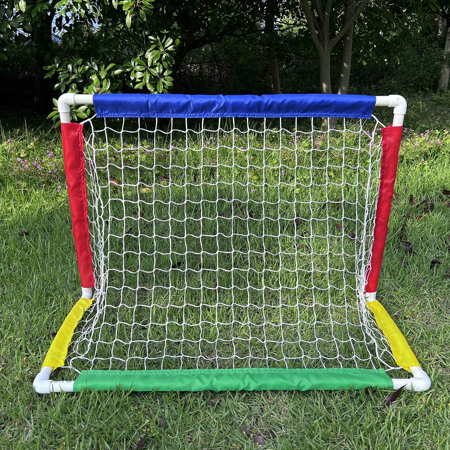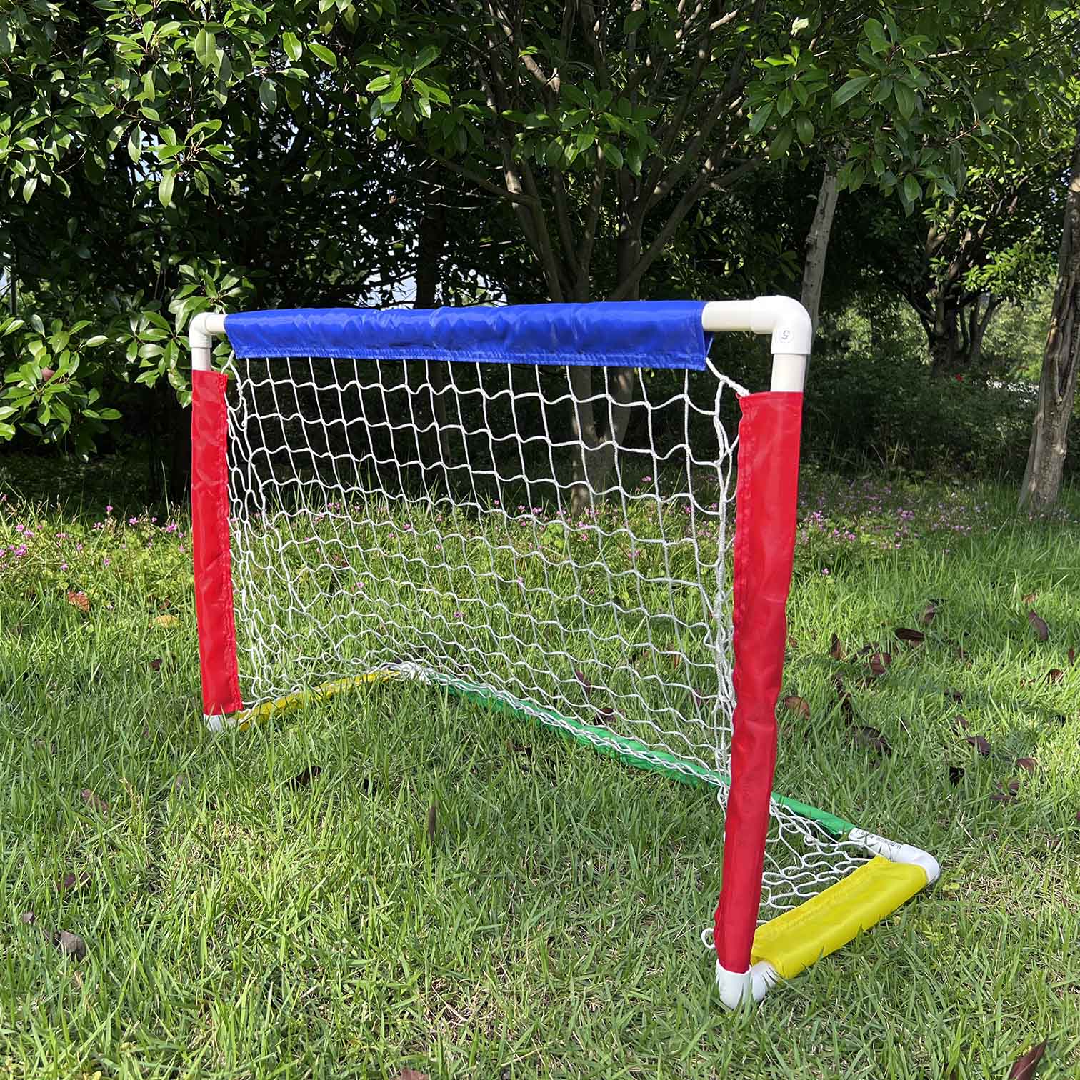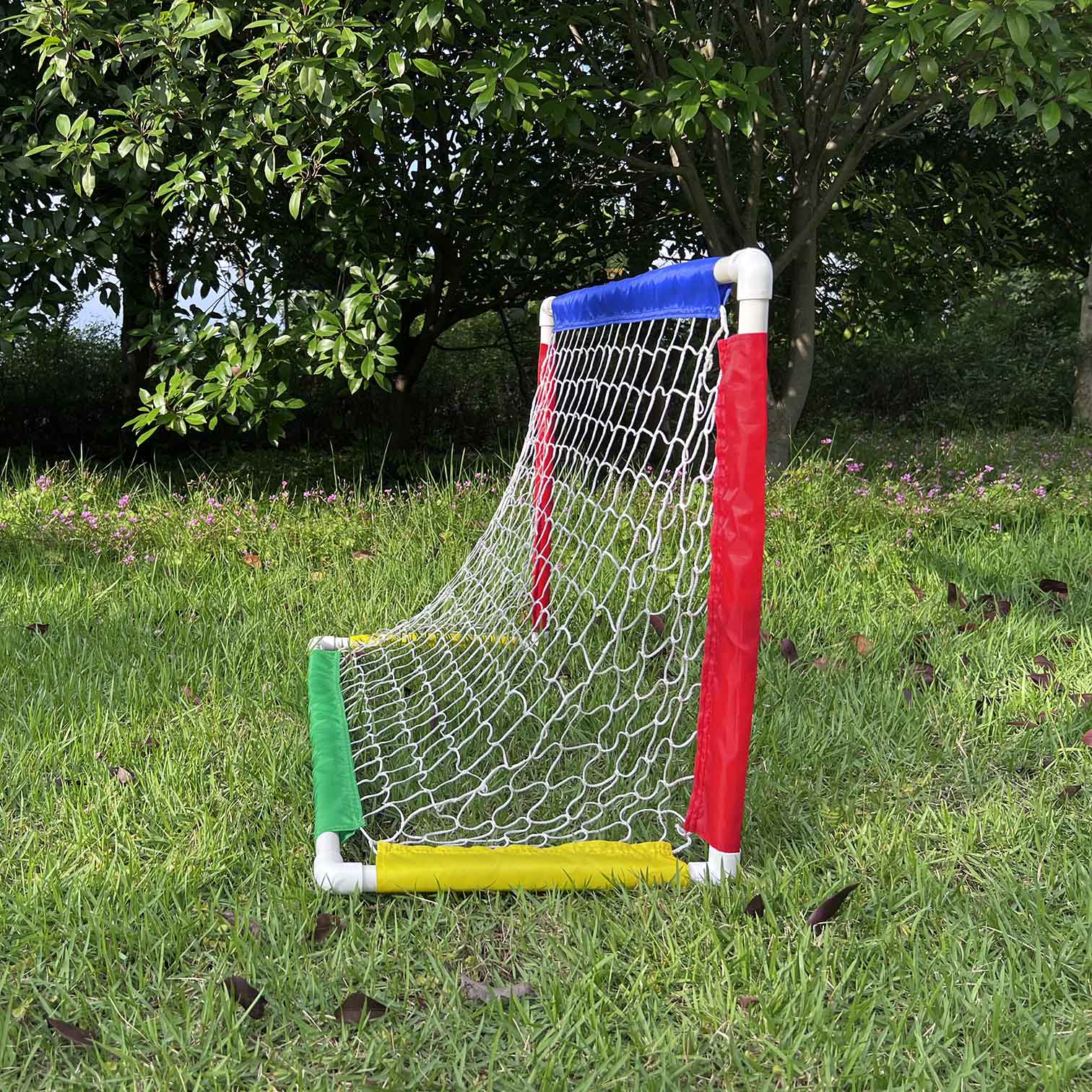 【CONTENTS】: It includes PVC goal and net, ground stakes.