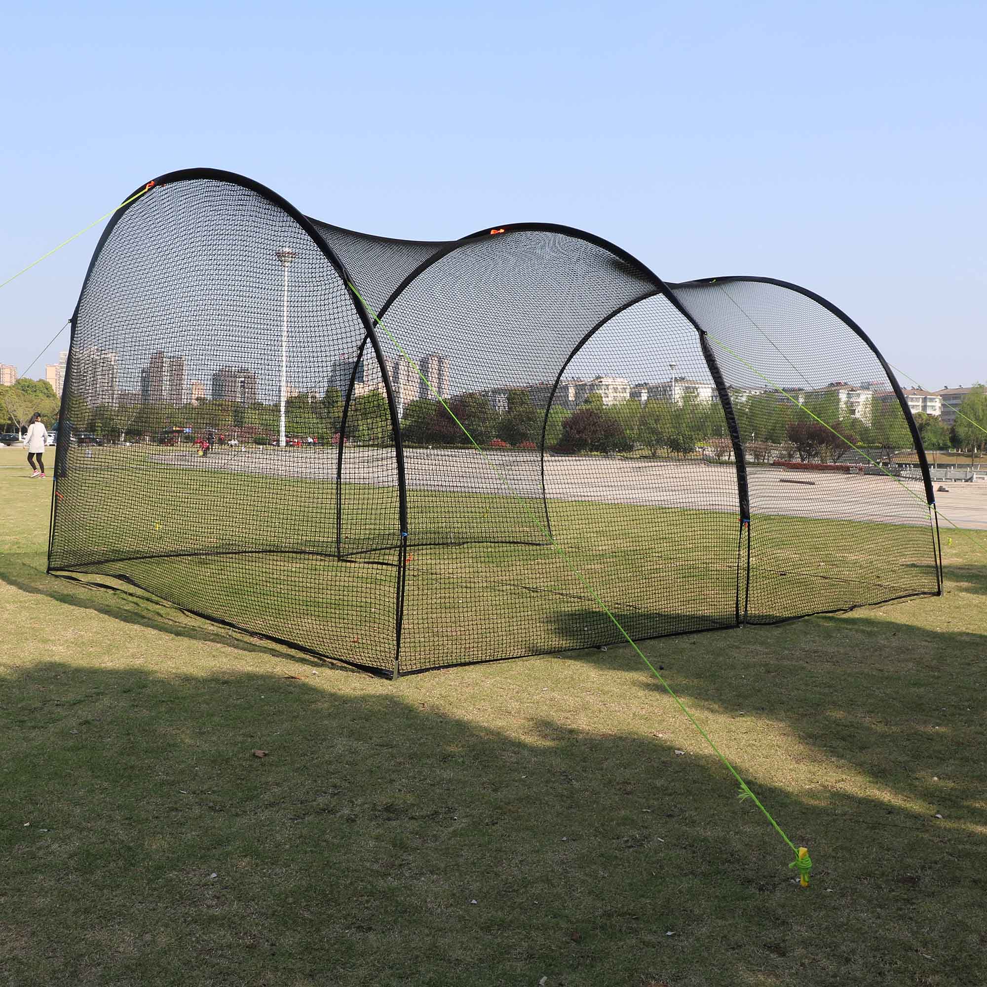 【DOESN’T FALL EVEN UNDER HEAVY WINDS】: Batters hitting cage includes 8 supporting ropes with ground pegs. Ensures the batting cage stays firmly in place during use.
