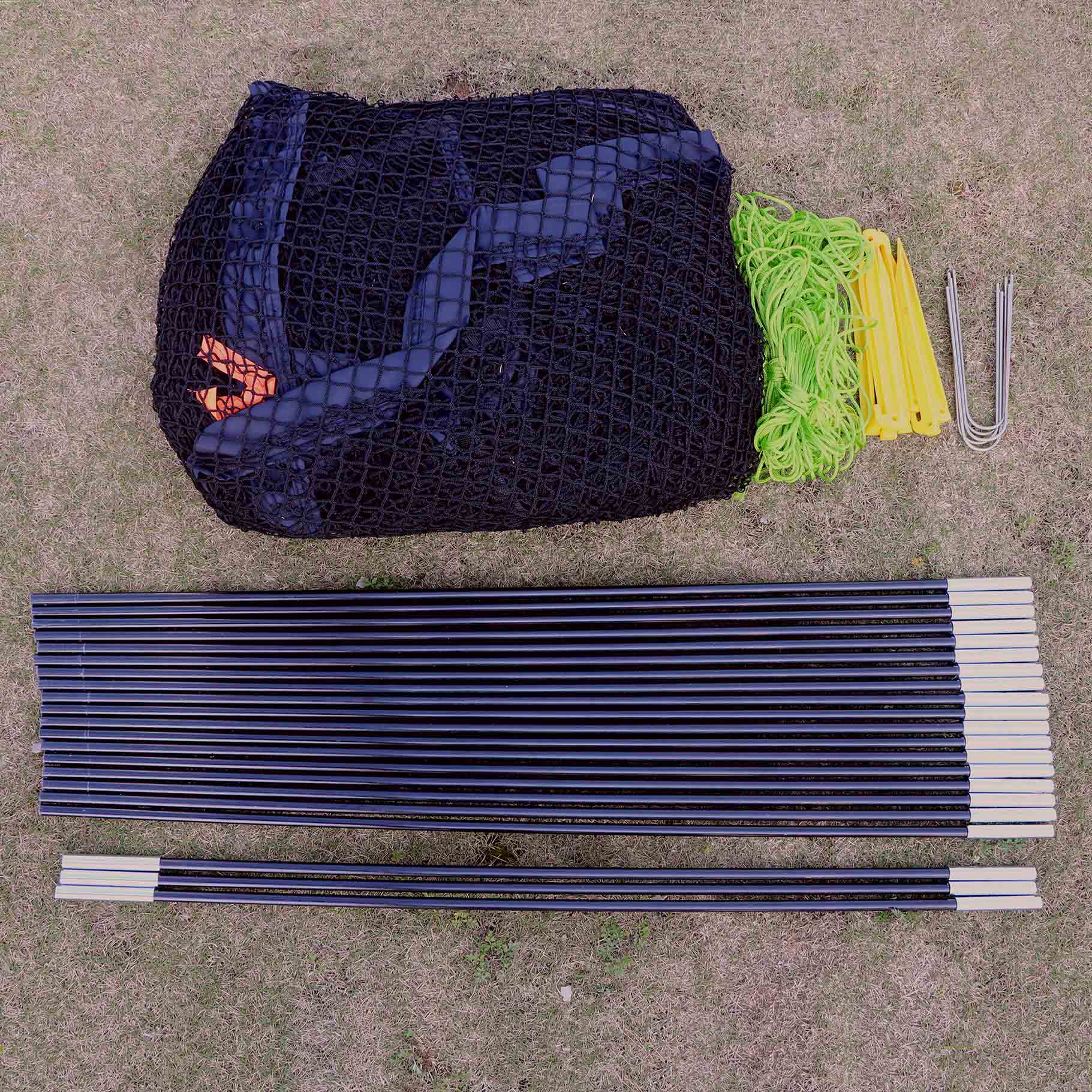 【CONTENTS】: Cage net, fiberglass poles, supporting ropes, ground stakes, zippered carrying bag.