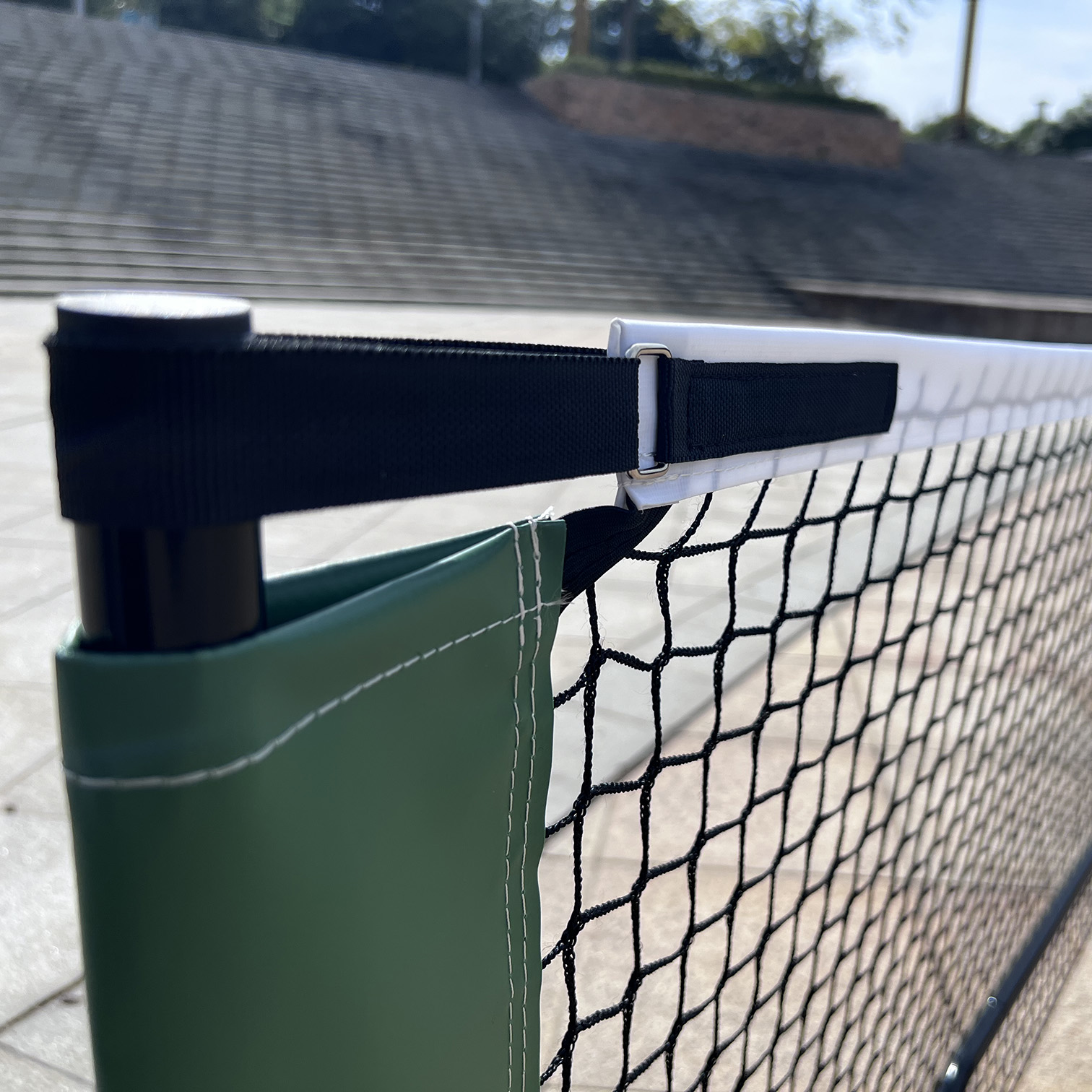 【DURABLE QUALITY】: It's sturdy inter locking metal frame, and dual PVC fabric are more durable.There are adjustable webbing at both ends to ensure that the net does not sag.This all-weather pickleball net is designed for premium quality play year after year on both indoor and outdoor pickleball courts.