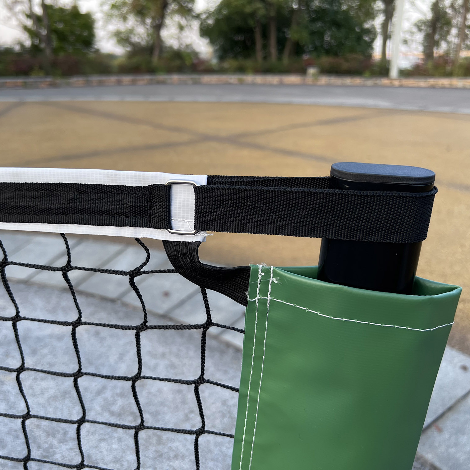 【DURABLE QUALITY】: Built with powdered steel oval tube posts,The gap between the joint of two oval tubes is smaller,so the structure is more stable.There are adjustable webbing at both ends to ensure that the net does not sag.This all-weather pickleball net is designed for premium quality play year after year on both indoor and outdoor pickleball courts.