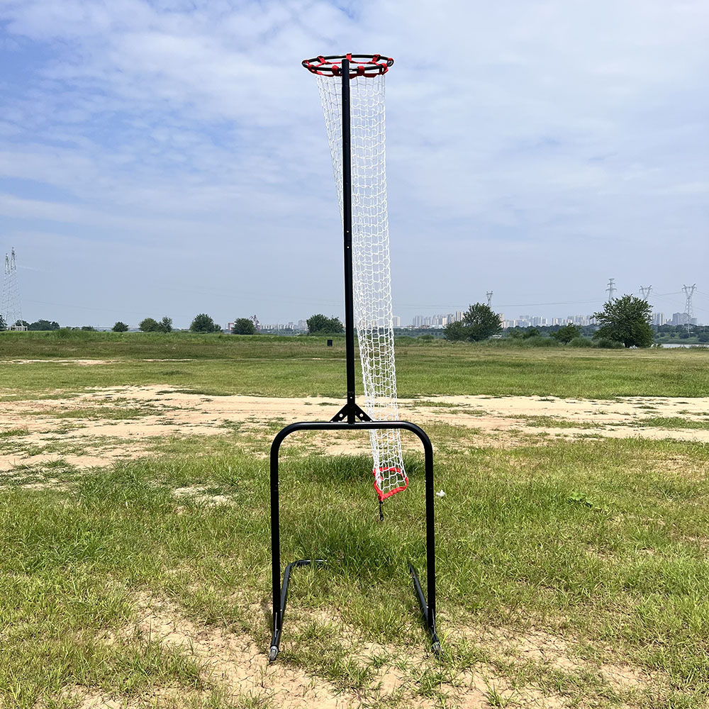 【CONTENTS】: Volleyball practice net with frame and wheels, ground stakes, zipped carrying bag.