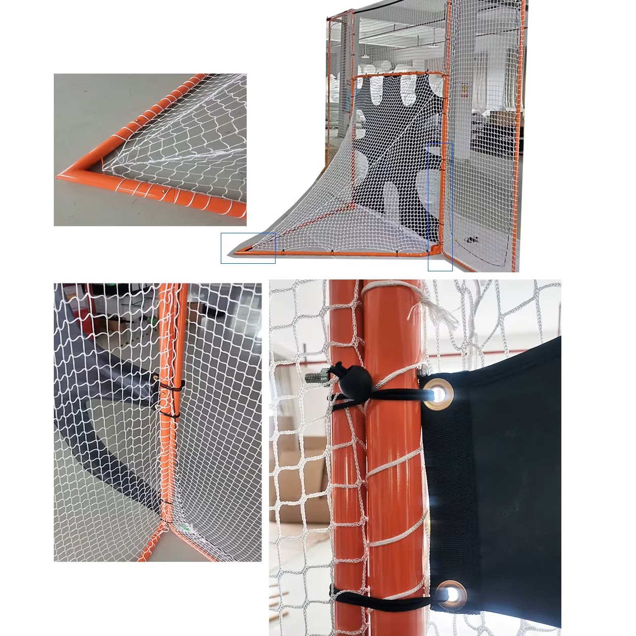 【PREMIUM MATERIAL】: The street hockey net has a 1.5" (38mm) diameter high quality steel tube structure. It comes with a 4mm thickened, wear - resistant mesh net, reinforced by a tear - resistant nylon bottom skirt. Built to last through seasons for both amateurs and pros.